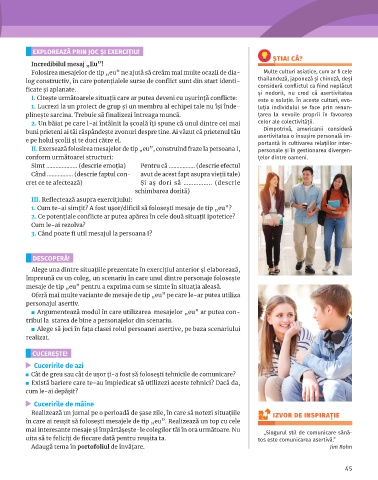 ◼ Argumentează modul în care utilizarea mesajelor „eu” ar putea con