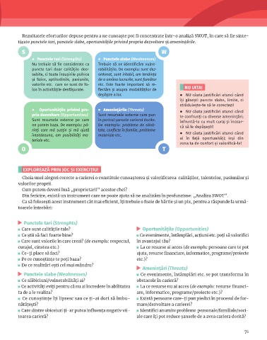 Oportunitățile privind pro- Amenințările (Threats) NU căuta justificări atunci când