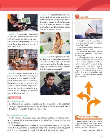 I. Fă o simulare de completare a fișei de înscriere la liceu, folosind bro- IZVOR DE INSPIRAȚIE