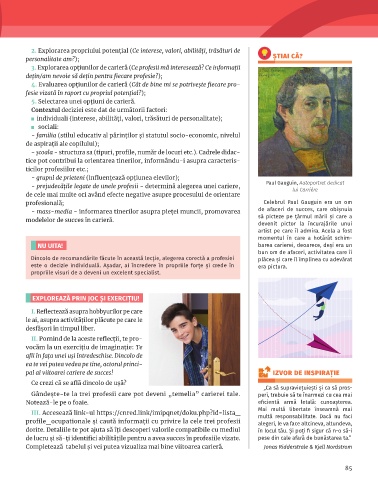 3. Explorarea opțiunilor de carieră (Ce profesii mă interesează? Ce informații