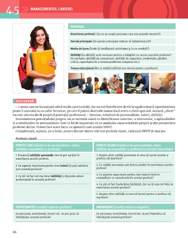 1. Enumeră calitățile personale care te pot sprijini în 1. Asupra căror calități personale ai vrea să lucrezi pentru a