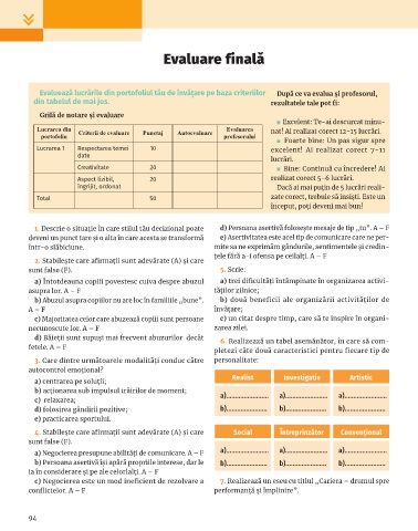deveni un punct tare și o alta în care acesta se transformă e) Asertivitatea este acel tip de comunicare care ne per-