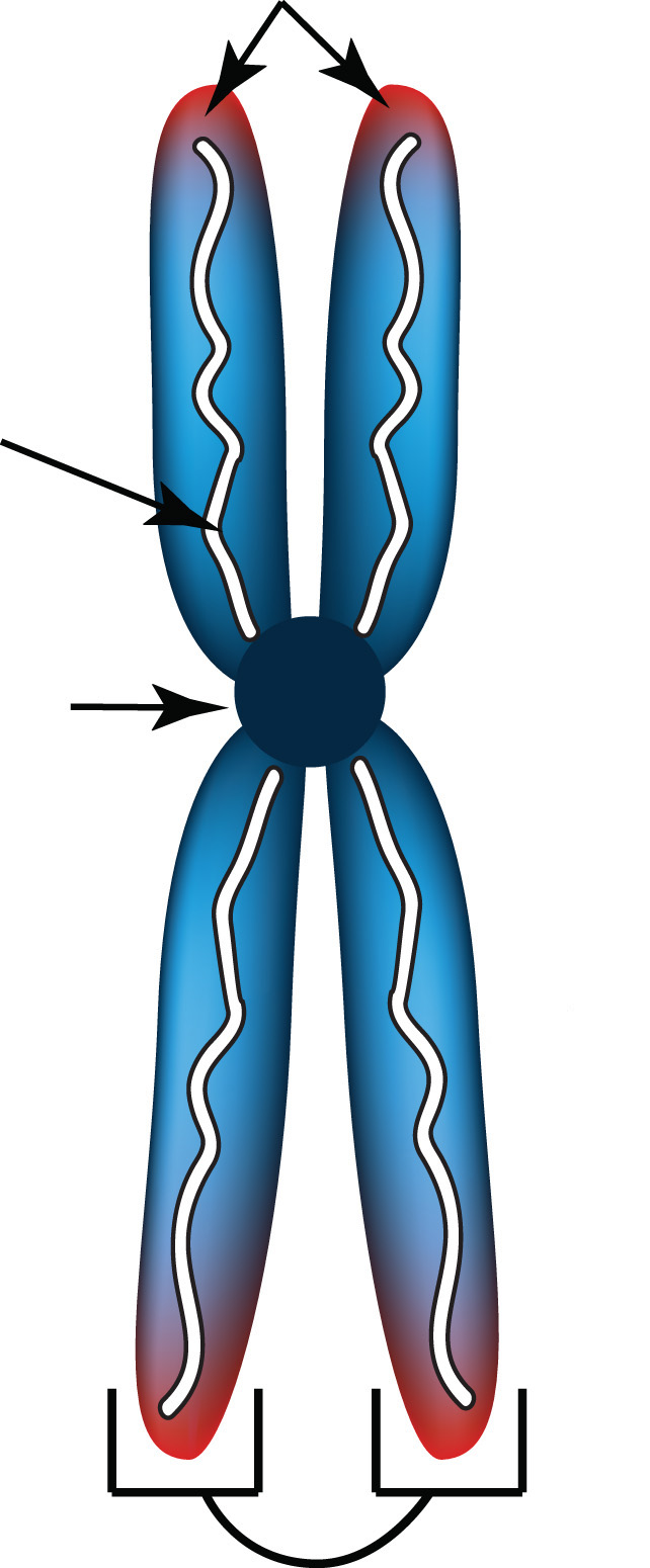 Poziționează denumirile părților componente ale cromozomului în locul potrivit.