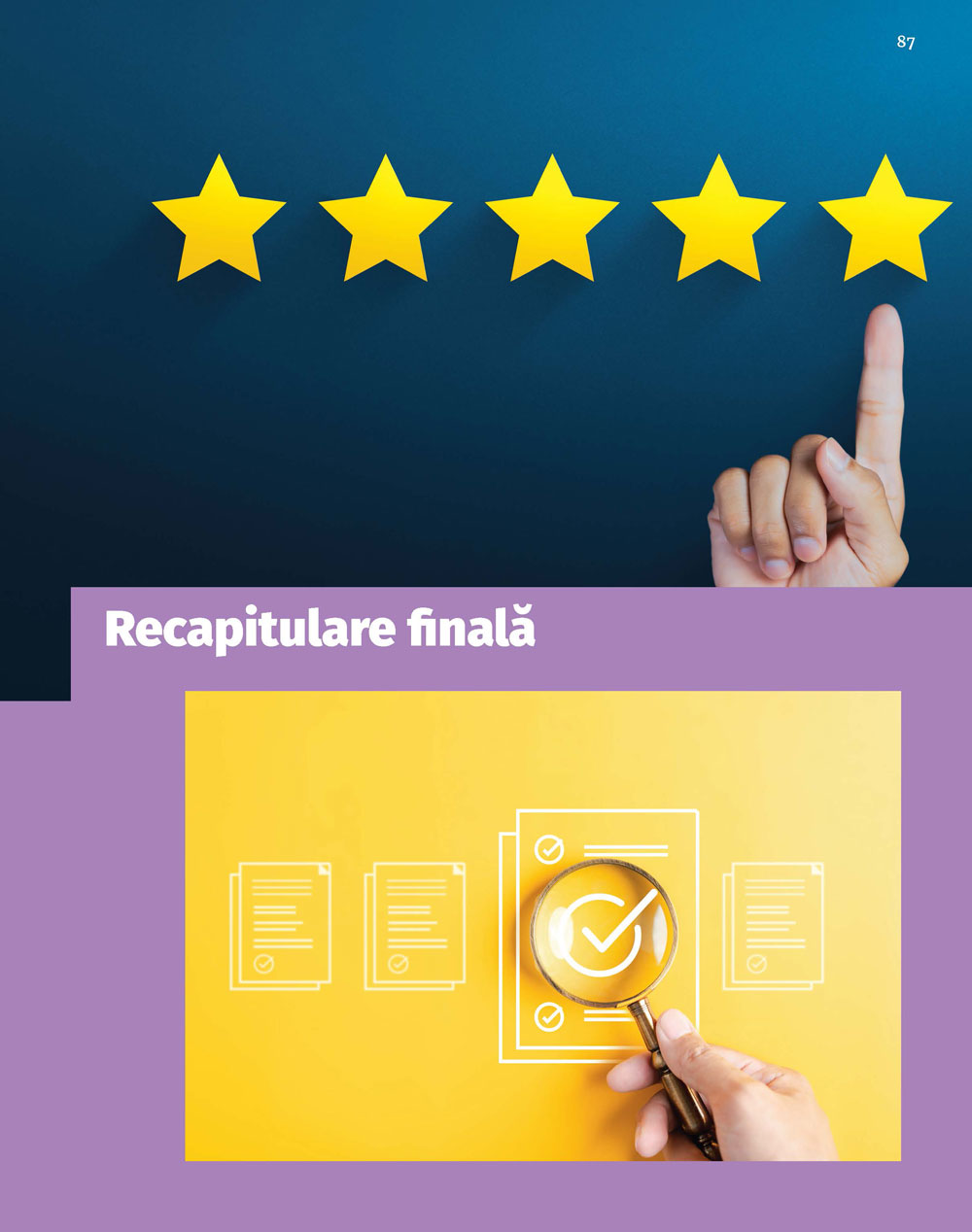 Activarea acestui buton îți permite vizualizarea unor secvențe educaționale cu grad înalt de interactivitate, la finalul cărora primești un feedback imediat. Exercițiile marcate cu acest icon pot fi de tipul trage și plasează, bifarea variantei corecte, asocierea unor termeni din mai multe coloane etc. La finalul rezolvării, vei afla dacă ai răspuns corect prin activarea butonului Verifică, iar dacă ai răspuns greșit, poți relua exercițiul prin activarea butonului Anulează.