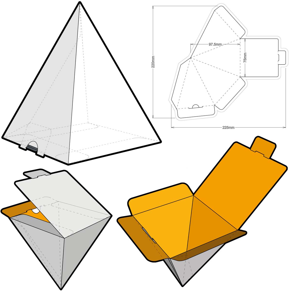 Construiește o cutie în formă de piramidă patrulateră regulată: