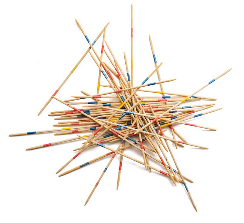 Jocul Mikado (sau Marocco) este o bună exemplificare a pozițiilor dreptelor în spațiu. El constă într-un set de bețișoare, lungi și subțiri la capete, care sunt lăsate să cadă, iar jucătorii încearcă să le scoată unul câte unul din grămadă, fără a le mișca pe celelalte.