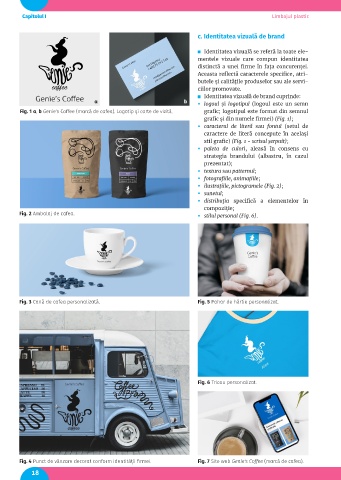 Fig. 4 Punct de vânzare decorat conform identității firmei. Fig. 7 Site web Genie's Coffee (marcă de cafea).