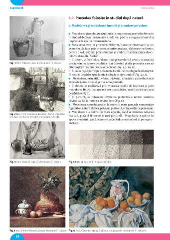 Fig. 4 Jean Siméon Chardin, Brioșa. Modelare în culoare. Fig. 6 Paul Cézanne, Natură statică cu draperie. Modulare în culoare.