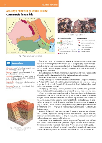 ților Curburii; deplasarea microplăcii din fundamentul Câmpiei Române; M area
