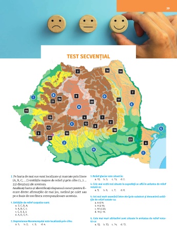 (A, B, C, … J) unitățile majore de relief și prin cifre (1, 2 … a. 12; b. 3; c. 15; d. 2.