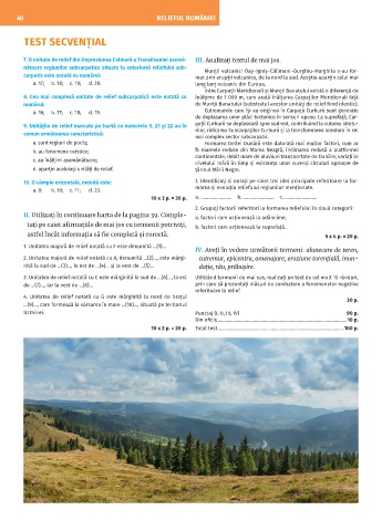 7. O unitate de relief din Depresiunea Colinară a Transilvaniei asemă- III. Analizați textul de mai jos.